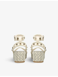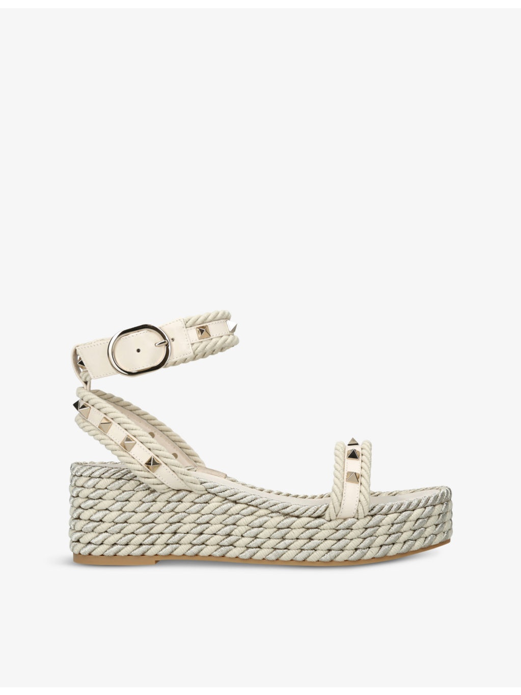 PRODUCT DETAILS - Valentino Garavani leather espadrilles - 100% leather - Buckle fastening - Square open toe, Rockstud embellishment, rope strap around at the ankle, flatform design - Specialist leather clean - Upper: 100% leather - Lining: 100% leather - Sole: 100% rubber Ref: R04321805