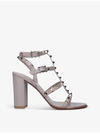 Rockstud open-toe leather heeled sandals