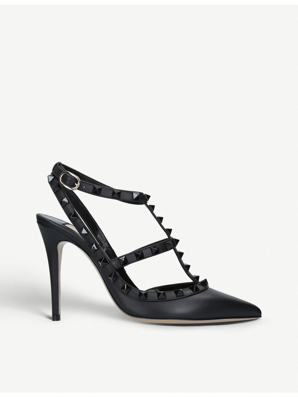 ROCKSTUD ANKLE STRAP PUMP WITH TONAL STUDS 100 MM