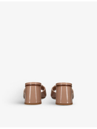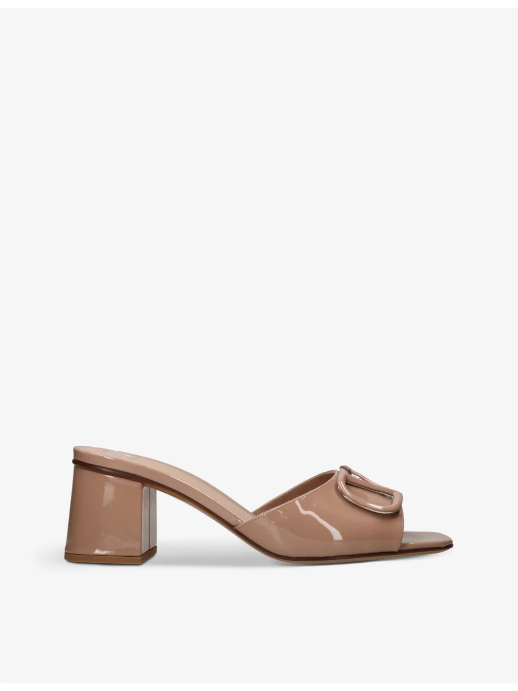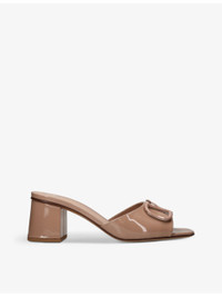 PRODUCT DETAILS - Valentino Garavani leather heeled mules - 100% leather - Slips on - Open toe, patent finish, logo plaque at top strap, block heel - Heel height 2.3"" - Specialist leather clean - Upper: 100% leather - Lining: 100% leather - Sole: 100% leather - Made in Italy Ref: R04161368