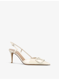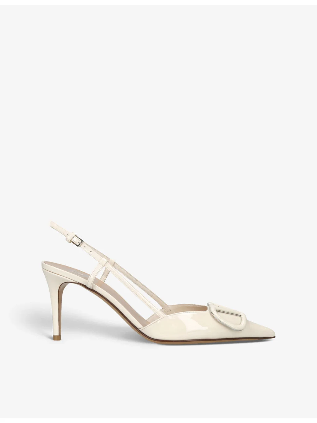 PRODUCT DETAILS - Valentino Garavani patent-leather slingback courts - 100% leather - Ankle-buckle fastening - Closed toe, pointed toe, logo plaque at front, heel, slingback design, tonal hardware - Heel height 80mm - Specialist leather clean - Made in Italy - Upper: 100% leather - Lining: 100% leather - Sole: 100% leather Ref: R04254293