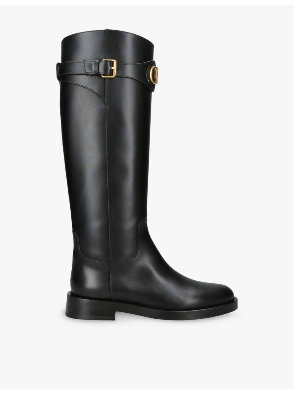 PRODUCT DETAILS - Valentino Garavani leather knee-high boots - 100% leather - Closed round toe, knee-high length, panelled upper, strap and buckle detail to cuff, VLogo hardware to front of strap, gold-toned hardware - Specialist leather clean - Made in Italy - Upper: 100% leather - Lining: 100% leather - Sole: 100% leather; 100% rubber Ref: R04473765