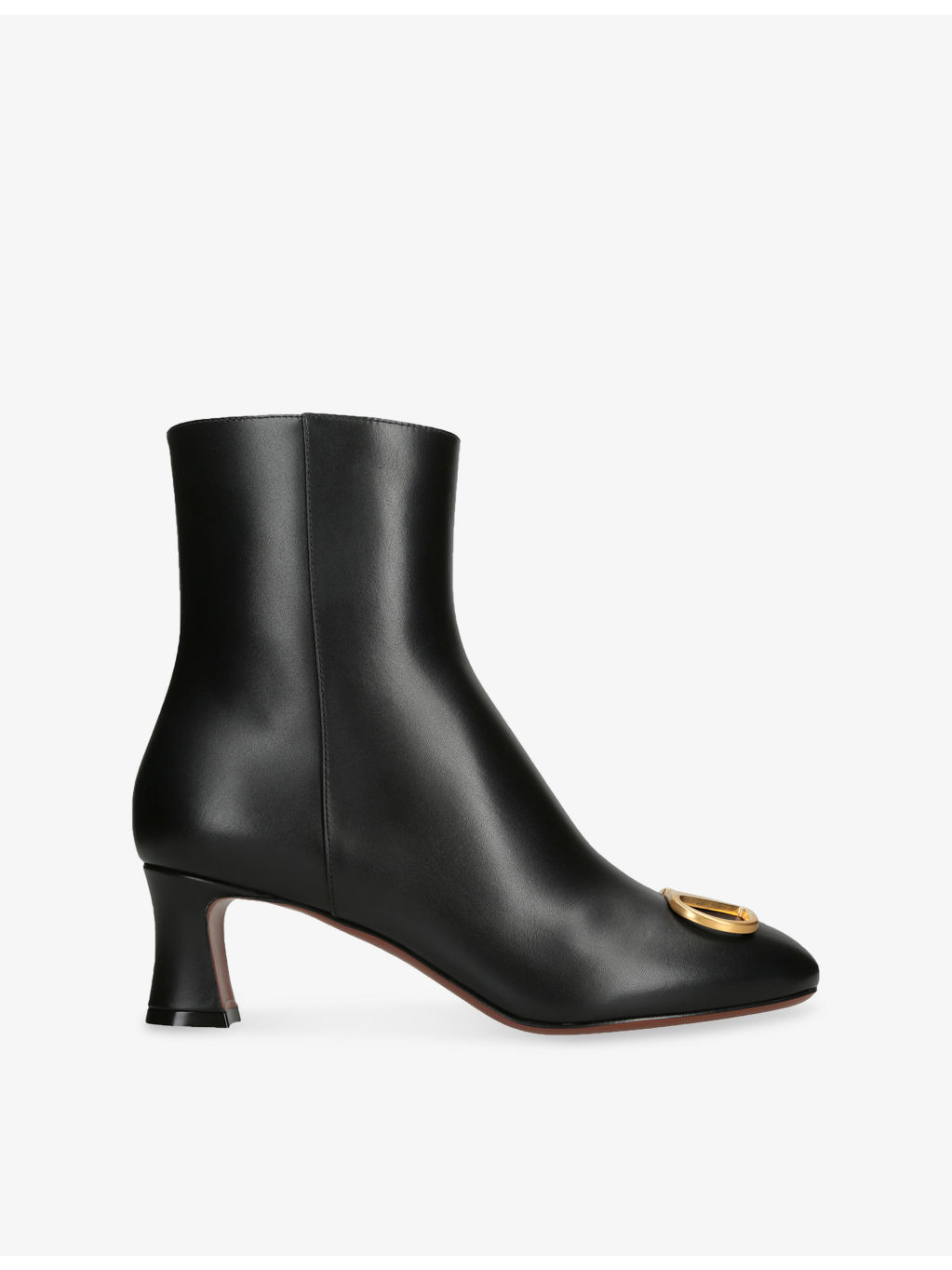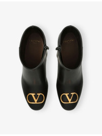 PRODUCT DETAILS - Valentino Garavani leather heeled ankle boots - 100% leather - Zip fastening - Closed almond toe, ankle length, VLogo hardware at toe, sculpted heel - Heel height 2” - Specialist leather clean - Made in Italy - Upper: 100% leather - Lining: 100% leather - Sole: 100% leather Ref: R04473779
