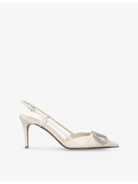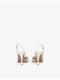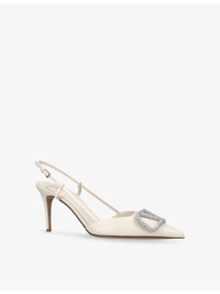 PRODUCT DETAILS - Valentino Garavani leather slingback pumps - 100% leather - Ankle-buckle fastening - Pointed closed toe, slingback design, VLogo embellishment at front, crystal embellishment, branded insole, stiletto kitten heel - Heel height 3.14in - Specialist leather clean - Made in Italy - Upper: 100% leather - Lining: 100% leather - Sole: 100% leather Ref: R04415415