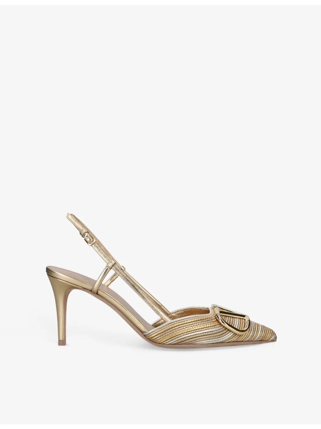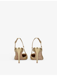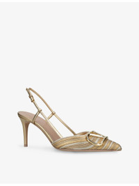 PRODUCT DETAILS - Valentino Garavani metallic-leather slingback pumps - 1000% nappa leather - Ankle-buckle fastening - Pointed closed toe, VLogo Signature plaque at front, Cornely embroidery, branded insole, laminated leather, gold-toned hardware, high stiletto heel - Heel height 3.2in - Specialist leather clean - Made in Italy - Presented in a branded box Ref: R04415461