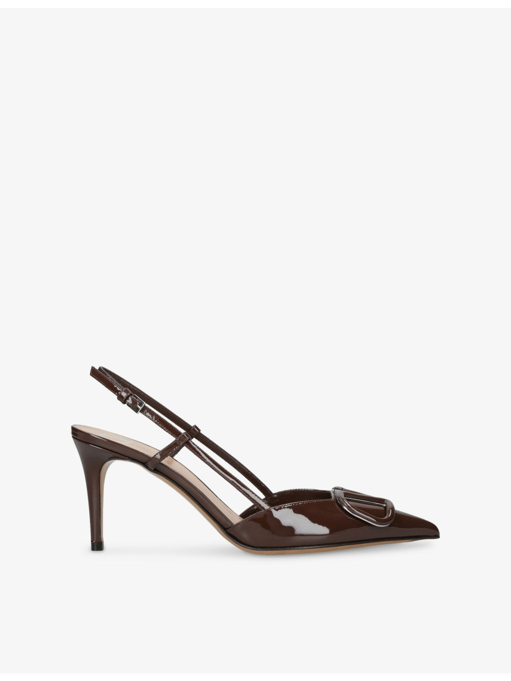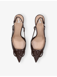 PRODUCT DETAILS - Valentino Garavani patent-leather slingback courts - 100% leather - Adjustable buckle fastening - Closed pointed toe, patent upper, tonal Vlogo Signature embellishment at front, slingback strap, stiletto heel - Heel height 3.15” - Specialist leather clean - Made in Italy - Upper: 100% leather - Lining: 100% leather - Sole: 100% leather Ref: R04511996