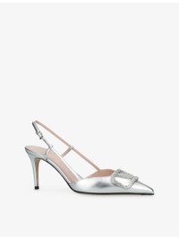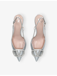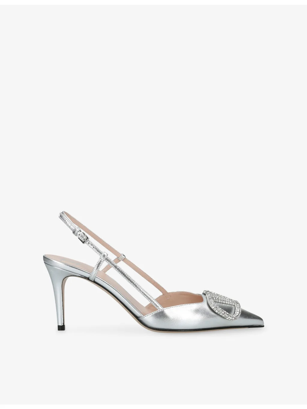 PRODUCT DETAILS - Valentino Garavani leather heels - 100% leather - Buckle fastening - Slingback style, pointed toe, VLogo hardware, mid-heel, metallic finish - Heel height 80mm - Specialist leather clean - Upper: 100% leather - Lining: 100% leather - Sole: 100% leather Ref: R04551155