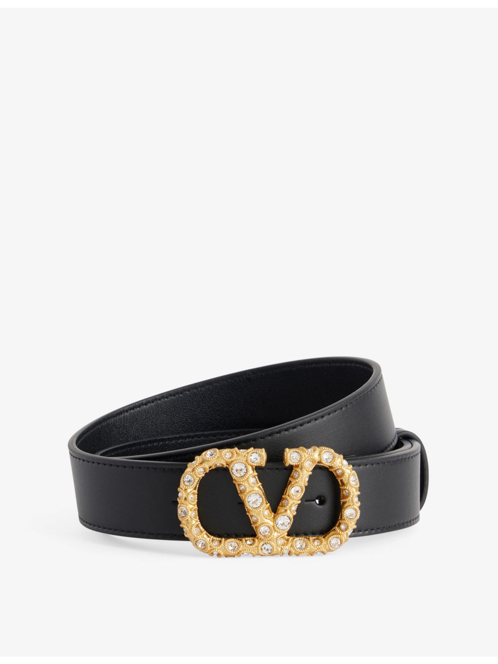 PRODUCT DETAILS - Valentino Garavani leather belt - 100% leather - Adjustable buckle fastening - Adjustable, VLogo buckle embellished with Swarovski crystals, antique-brass hardware, keeper loop, shiny finish - Specialist leather clean - Made in Italy - Dimensions: 30mm - Presented in a box Ref: R04414845