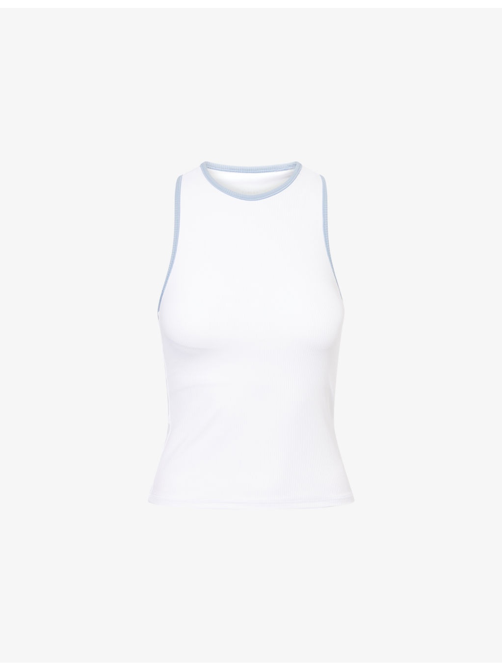 PRODUCT DETAILS - Varley stretch-woven top - 78% polyamide, 22% elastane - Slim fit, round neck, sleeveless, racerback, all-over ribbed detail, contrast trim, inner shelf with removable cups, straight hem - Machine wash at 30°C - True to size - Model is 5ft 10in/1.78m and wears a size small - Lightweight, stretchy Ref: R04470170