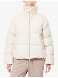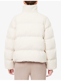 PRODUCT DETAILS - Varley woven puffer jacket - 100% polyester; filling 100% polyester; lining 100% nylon - Exposed zip fastening at front - Funnel neck, long sleeves, ribbed cuffs, all-over padding, gold-toned hardware, adjustable drawstring hem - Machine wash at 30°C - True to size - Model is 5ft 10in/1.78m and wears a size small - Midweight, non-stretch Ref: R04555095