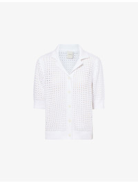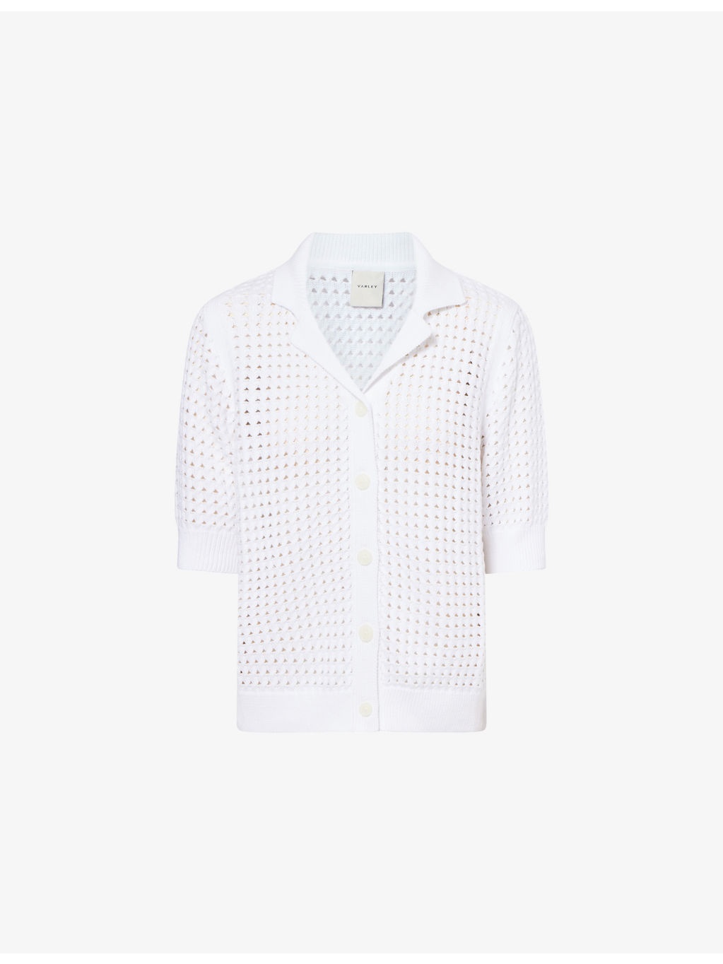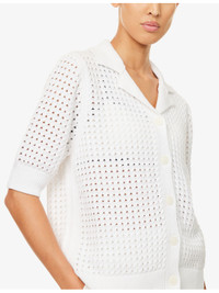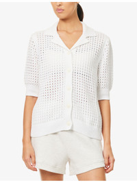 PRODUCT DETAILS - Varley cotton knitted shirt - 100% cotton - Button fastening - Regular fit, notched collar, short sleeves, open knit pattern, ribbed trims - Machine wash cold - True to size - Model is 5ft 10in/1.78m and wears a size small - Lightweight, stretchy Ref: R04470175