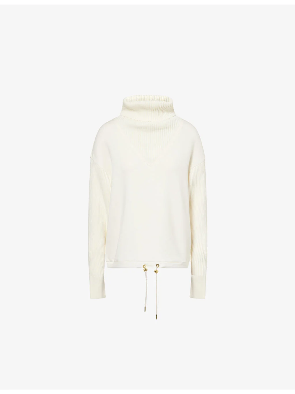 PRODUCT DETAILS - Varley jersey sweatshirt - 81% viscose, 15% polyester, 4% elastane - Relaxed fit, cowl neck, long sleeves, ribbed trims, drawstring hem - Machine wash cold - True to size - Model is 5ft 10in/1.78m and wears a size small - Lightweight, stretchy Ref: R04544278