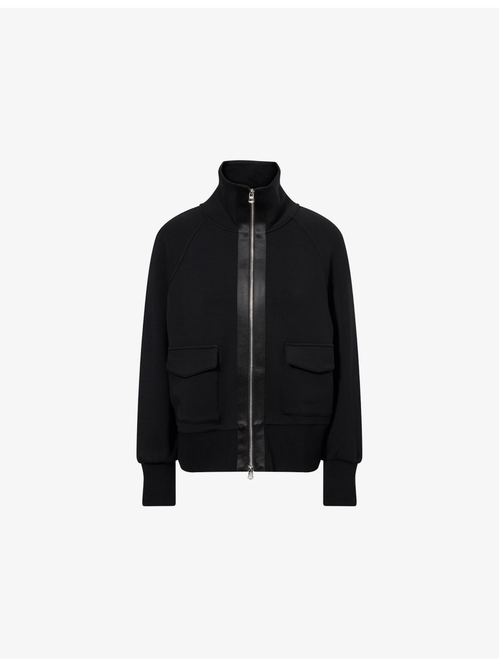 PRODUCT DETAILS - Varley stretch-woven jacket - 72% viscose, 23% polyester, 5% elastane - Exposed zip fastening at front - Relaxed fit, high funnel neck, long raglan sleeves, two front patch pockets. DoubleSoft fabric, contrast sateen trims, ribbed cuffs and hem - Machine wash cold - True to size - Model is 5ft 10in/1.78m and wears a size small - Midweight, slight stretch Ref: R04392344