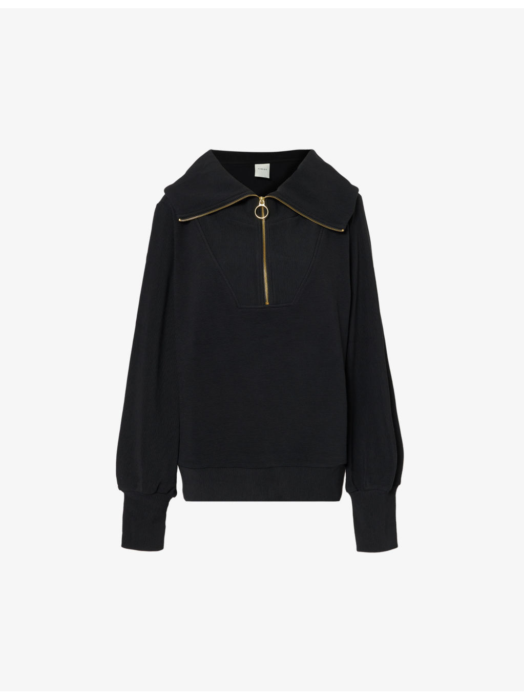 PRODUCT DETAILS - Varley cotton-blend sweatshirt - 53% cotton, 46% polyester, 1% elastane - Zip fastening - Relaxed fit, collar, dropped shoulders, long sleeves, ribbed texture, gold-toned hardware - Machine wash cold - True to size - Model is 5ft 10in/1.78m and wears a size small - Midweight, slight stretch