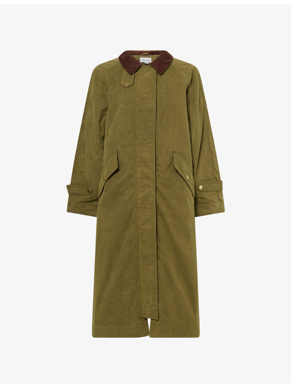 PRODUCT DETAILS - Veronica Beard cotton-blend jacket - 74% cotton, 26% nylon; filling 100% polyester; lining 100% polyester - Concealed popper and zip fastening at front - Relaxed fit, corduroy collar, raglan long sleeves, buttoned epaulette at cuffs, two buttoned pockets at front, pleated panel at back, coated, all-over padded, fully lined - Dry clean only - True to size - Size small: length 45in / 115cm - Model is 5ft 10in/1.78m and wears a size small - Heavyweight, non-stretch Ref: R04535646