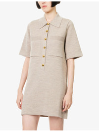 PRODUCT DETAILS - Veronica Beard wool mini dress - 100% wool - Exposed button fastening at front - Relaxed fit, H-line silhouette, spread collar, short sleeves, two patch pockets at front, all-over knitted, ribbed trims - Dry clean only - Made in Turkey - True to size - Size small: length 32in / 81cm - Model is 5ft 10in/1.78m and wears a size small - Midweight, stretchy Ref: R04535630