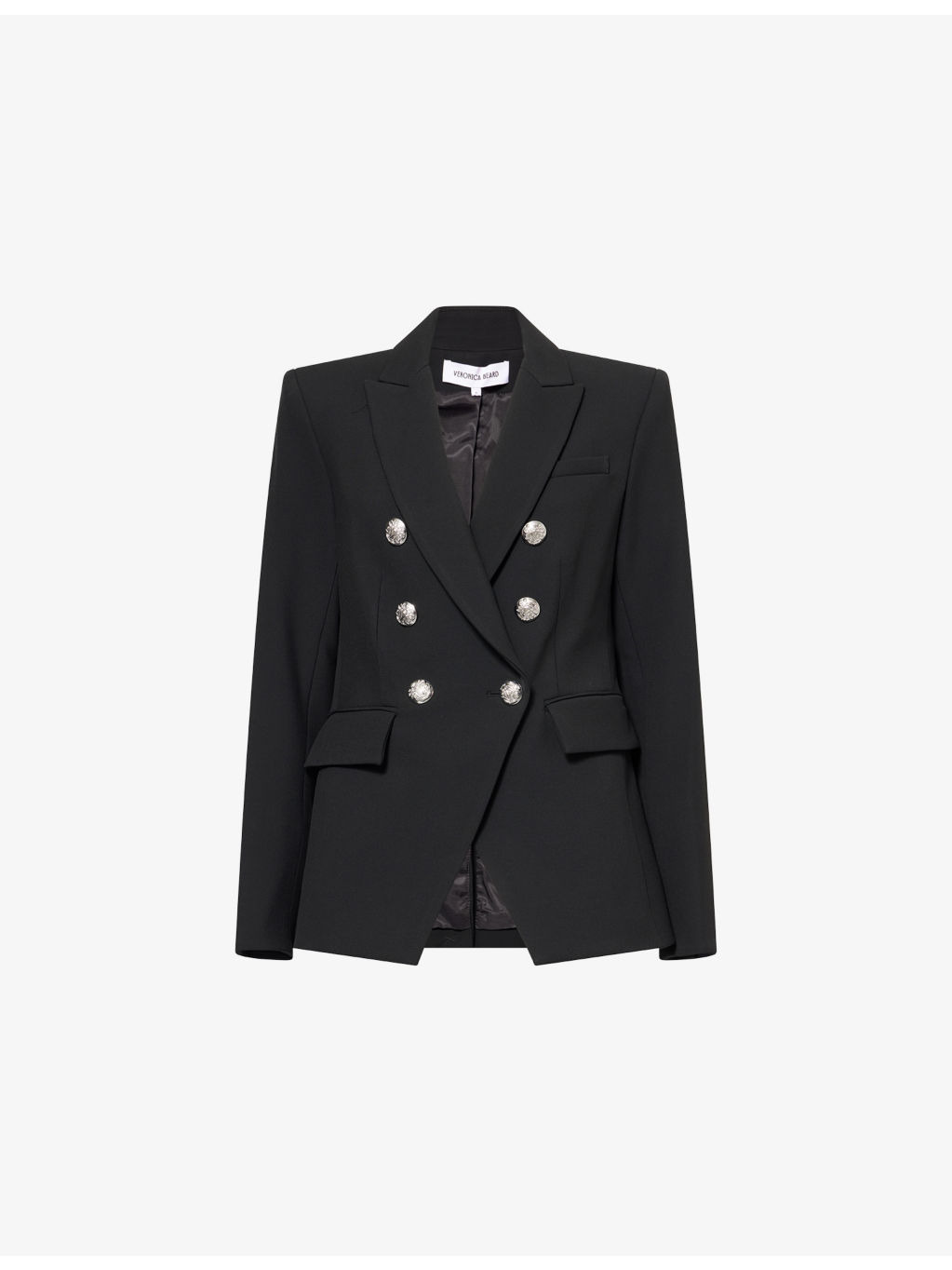 PRODUCT DETAILS - Veronica Beard woven blazer - 63% polyester, 27% viscose, 7% cotton, 3% elastane - Button fastening at front - Regular fit, peak lapels, padded shoulders, long sleeves, buttoned cuffs, welt pocket at chest, flap pockets at front, single vent at back - Dry clean - True to size - Size UK 8: length 26.5in / 67cm - Model is 5ft 10in/1.78m and wears a size UK 8 - Midweight, slight stretch Ref: R04538994