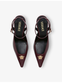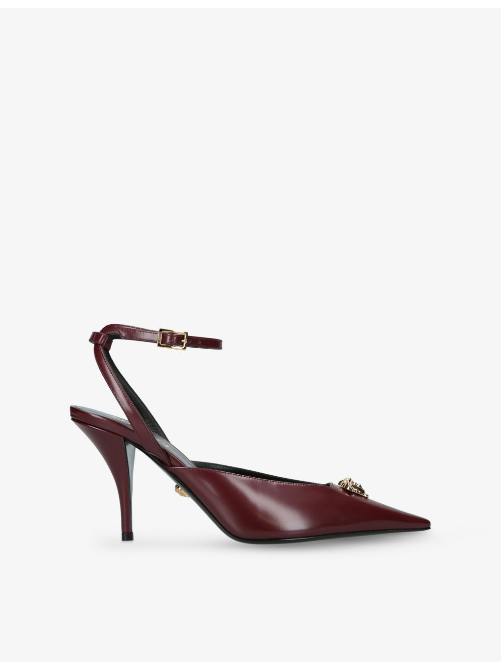 PRODUCT DETAILS - Versace leather pumps - 100% leather - Pointed toe, slingback style, Medusa hardware at front - Specialist leather clean - Heel height 85mm - Made in Italy - Upper: 100% leather - Lining: 100% leather - Sole: 100% leather Ref: R04474473