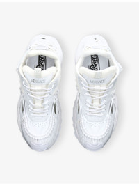 PRODUCT DETAILS - Versace mesh low-top trainers - 100% polyester; trim 100% leather - Lace-up fastening - Round toe, branded tongue, pull tab, cut-out sides, chunky rubber sole - Wipe with a clean, dry cloth - Upper: 50% polyester, 50% leather - Lining: 50% nylon, 50% leather - Sole: 100% rubber Ref: R04427092