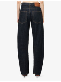PRODUCT DETAILS - Victoria Beckham denim jeans - 100% cotton - Exposed button and concealed zip-fly fastening at front - Regular fit, high-rise, straight leg, structured waistband with belt loops, two side slant pockets, branded silver-toned hardware, two rear patch pockets, contrast stitching brand patch at back, dark wash - Machine wash at 30°C - True to size - Size 26: rise 11in / 28cm, inside leg 33.5in / 85cm, leg opening 17in / 43cm - Model is 5ft 10in/1.78m and wears a size 26 - Midweight, non-stretch Ref: R04536542