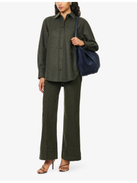 PRODUCT DETAILS - Victoria Beckham cotton trousers - 100% cotton; trims 100% leather - Exposed button and concealed zip-fly fastening at front - Relaxed fit, high-rise, wide leg, belt loops, monogram embroidery at front, two patch pockets at front and back, brand patch at back, all-over corduroy texture - Machine wash at 30°C - Made in Italy - True to size - Size 26: rise 12in / 31cm, inside leg 32in / 81cm, leg opening 22in / 56cm - Model is 5ft 10in/1.78m and wears a size 26 - Midweight, non-stretch Ref: R04538514