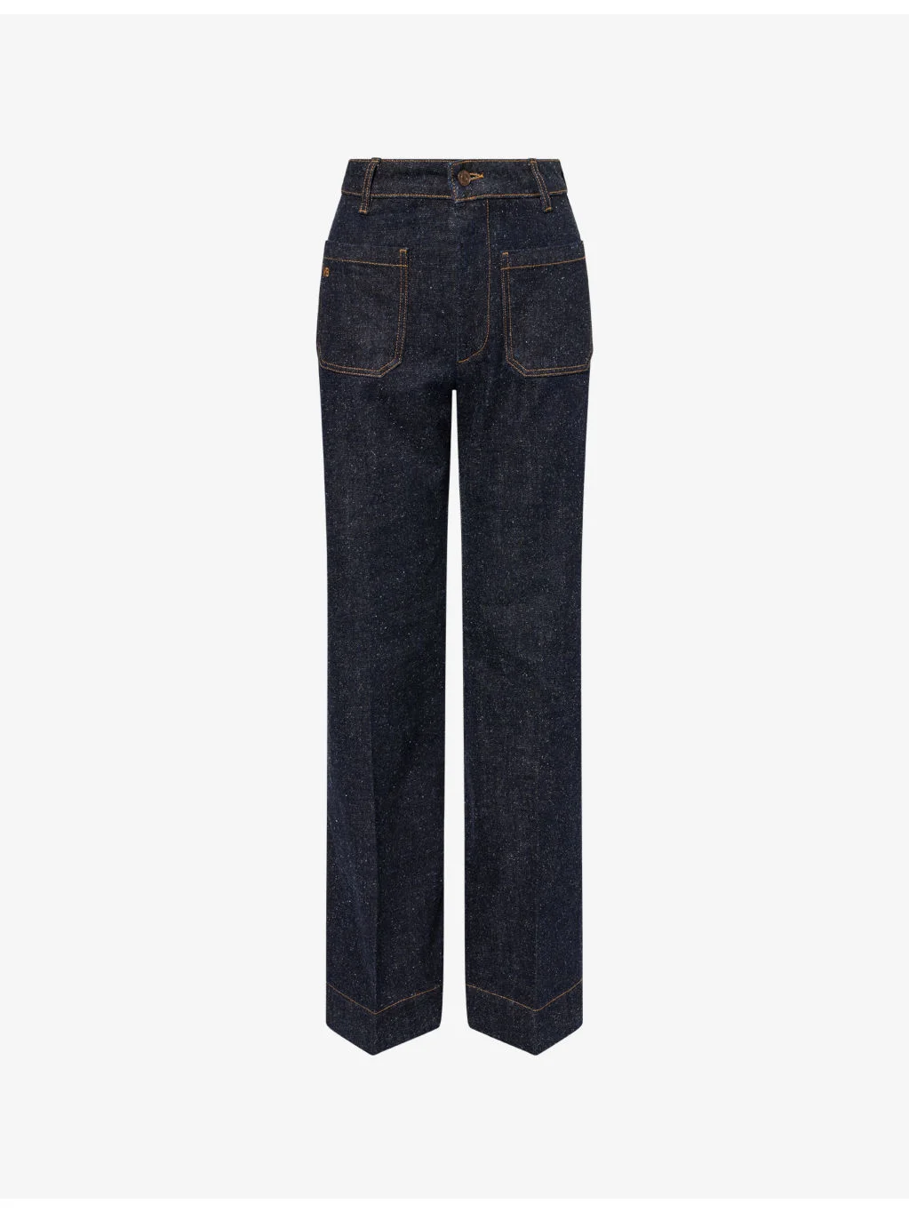 PRODUCT DETAILS - Victoria Beckham denim jeans - 100% cotton - Button and zip-fly fastenings at front - Regular fit, high-rise, wide-leg, belt loops, embroidered logo at front, patch pockets at front and back - Machine wash at 30°C - Made in Italy - True to size - Size 26: rise 12in / 30.5cm, inside leg 34in / 87cm, leg opening 23in / 59cm - Model is 5ft 10in/1.78m and wears a size 26 - Midweight, non-stretch Ref: R04553939