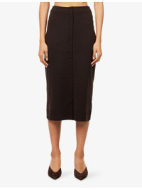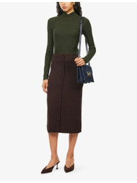 PRODUCT DETAILS - Victoria Beckham stretch-wool blend midi skirt - 82% merino wool, 16% polyamide, 2% elastane - Slim fit, high-waist, button embellishment at front, all-over knitted, ribbed trims - Dry clean only - True to size - Size small: length 31in / 79cm - Model is 5ft 10in/1.78m and wears a size small - Midweight, stretchy Ref: R04538502