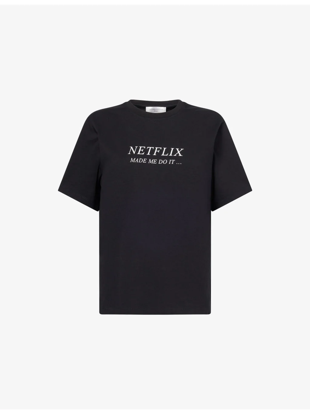 PRODUCT DETAILS - Victoria Beckham cotton-jersey T-shirt - 100% cotton - Relaxed fit, round neck, ribbed trim at neck, short sleeves, 'Netflix Made Me Do It' slogan print at front, logo embroidered at back, jersey texture - Machine wash at 30°C - Made in Portugal - True to size - Model is 5ft 10in/1.78m and wears a size UK 8 - Lightweight, non-stretch Ref: R04536541