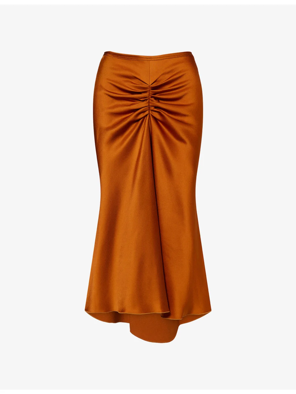 PRODUCT DETAILS - Victoria Beckham woven midi skirt - 71% acetate, 29% viscose - Concealed zip fastening at back - Slim fit, high-waist, gathered at front, all-over crepe texture, curved hem - Dry clean only - Made in Portugal - True to size - Size UK 8: length 34in / 88cm - Model is 5ft 10in/1.78m and wears a size UK 8 - Lightweight, slight stretch Ref: R04553940