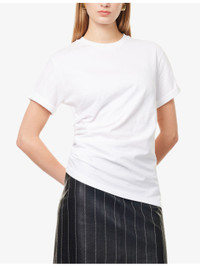 PRODUCT DETAILS - Victoria Beckham cotton T-shirt - 100% cotton - Round neck, short sleeves, gathers at side, lightweight - Machine wash at 30°C - Made in Portugal - True to size - Model is 5ft 10in/1.78m and wears a size small - Lightweight, non-stretch Ref: R04472752