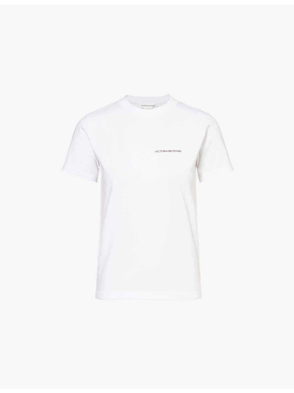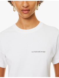 PRODUCT DETAILS - Victoria Beckham organic-cotton jersey T-shirt - 100% organic cotton - Slips on - Regular fit, round neck, ribbed trim at neck, short sleeves, brand print at front - Machine wash cold - Made in Portugal - True to size - Model is 5ft 10in/1.78m and wears a size small - Lightweight, slight stretch Ref: R04361149