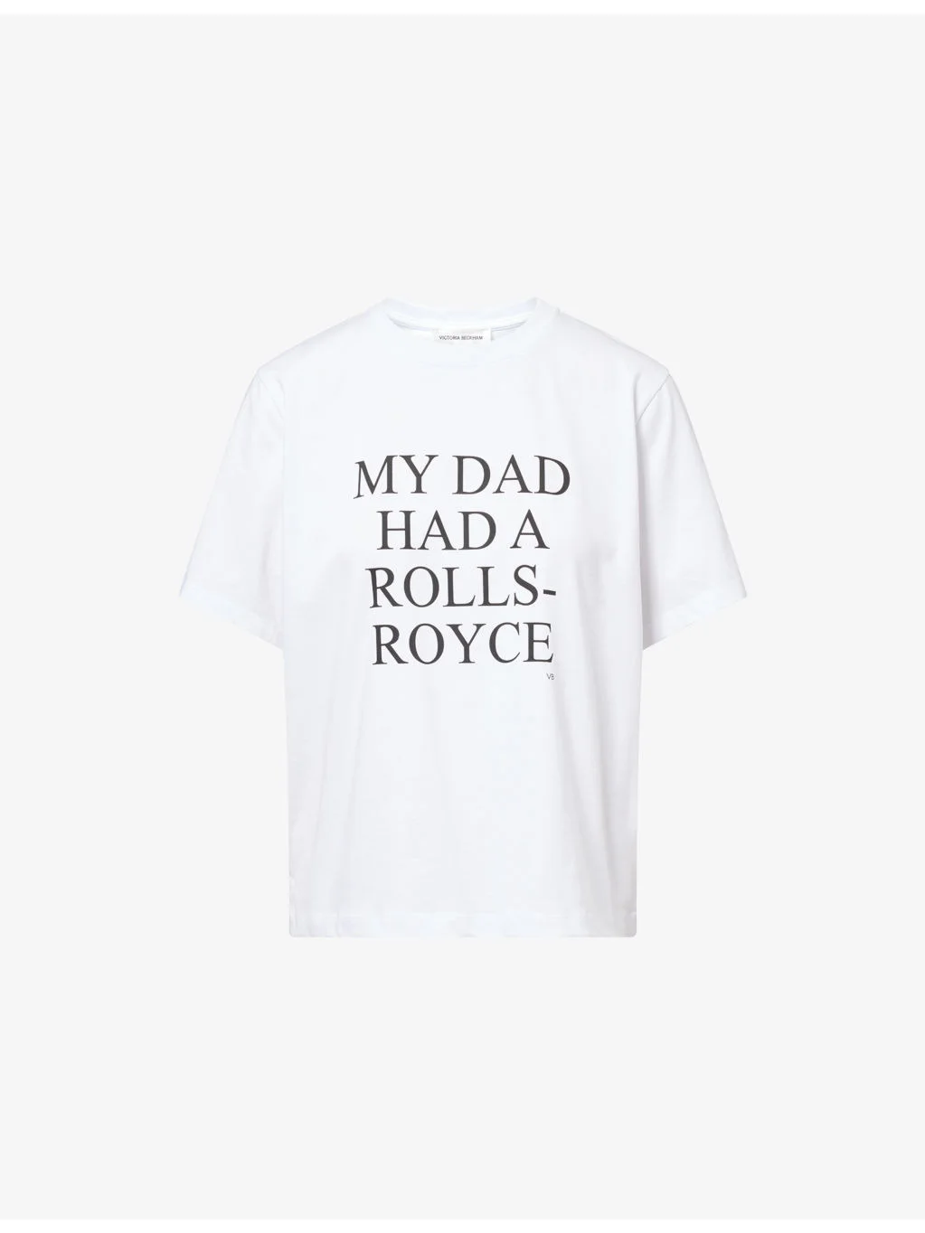 PRODUCT DETAILS - Victoria Beckham cotton-jersey T-shirt - 100% cotton - Regular fit, crew neck, short sleeves, text graphic at front, logo embroidery at neck back - Machine wash cold - Made in Portugal - True to size - Model is 5ft 10in/1.78m and wears a size small - Lightweight, slight stretch Ref: R04540076