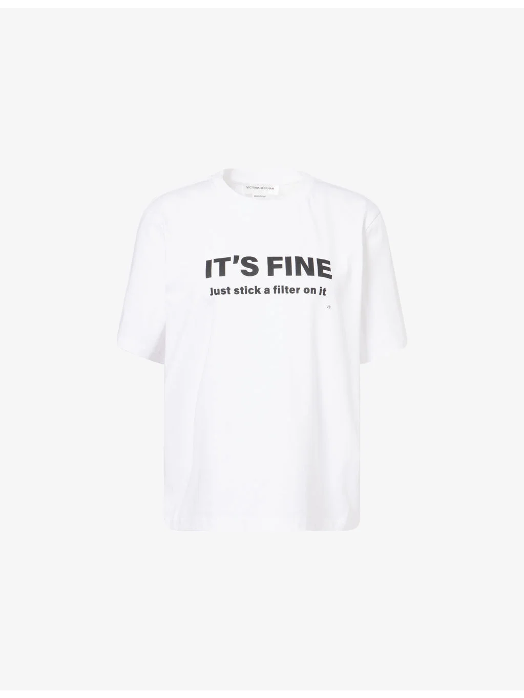 PRODUCT DETAILS - Victoria Beckham cotton-jersey T-shirt - 100% cotton; trims 95% cotton, 5% elastane - Relaxed fit, ribbed round-neck, short sleeves, text print at front, brand embroidery at back - Machine wash at 30°C - Made in Portugal - True to size - Model is 5ft 10in/1.78m and wears a size small - Lightweight, stretchy Ref: R04553926