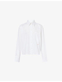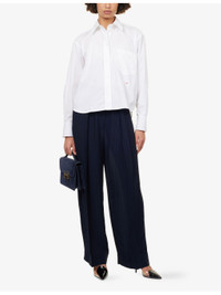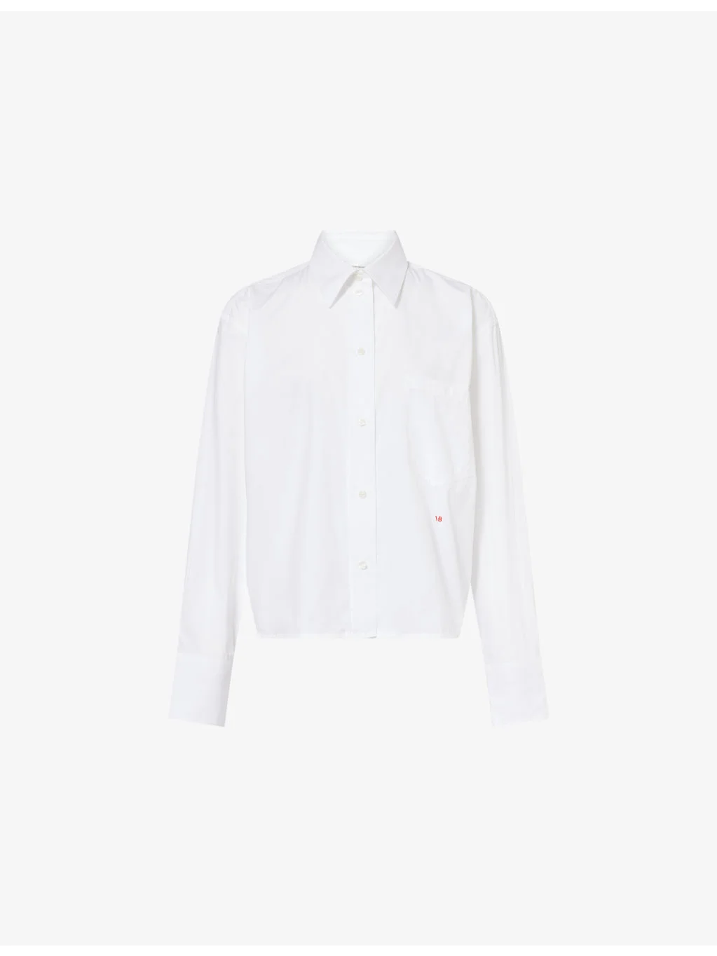 PRODUCT DETAILS - Victoria Beckham cotton-poplin shirt - 100% cotton - Exposed button fastening at front - Spread collar - Buttoned cuffs - Relaxed fit, cropped, collar, long sleeves, patch pocket and brand embroidery at front, straight yoke and pleat at back, curved hem - Dry clean only - Made in Turkey - True to size - Size UK 8: length 25in / 65cm - Model is 5ft 10in/1.78m and wears a size UK 8 - Lightweight, stretchy Ref: R04553935