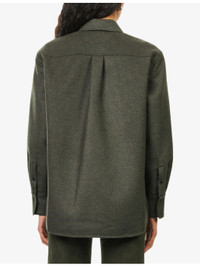 PRODUCT DETAILS - Victoria Beckham wool and cashmere shirt - 90% virgin wool, 10% cashmere; trims 70% cotton, 30% polyamide - Exposed button fastening at front - Spread collar - Buttoned cuffs - Relaxed fit, collar, long sleeves, patch pocket at front, straight yoke and pleat at back, brushed, curved hem - Dry clean - Made in Portugal - True to size - Size UK 8: length 29in / 74cm - Model is 5ft 10in/1.78m and wears a size UK 8 - Midweight, stretchy Ref: R04538515