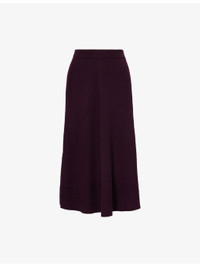 PRODUCT DETAILS - Victoria Beckham wool midi skirt - 100% merino wool - Regular fit, high-waist, elasticated waistband, all-over knitted and ribbed, flared hem - Dry clean only - True to size - Size small: length 30in / 77cm - Model is 5ft 10in/1.78m and wears a size small - Midweight, stretchy Ref: R04538516