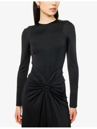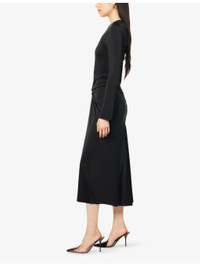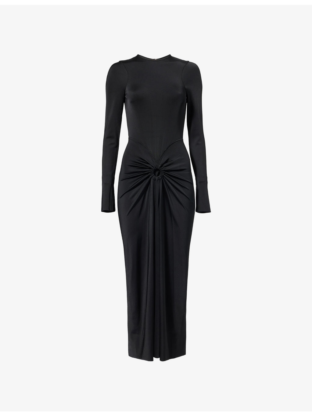 PRODUCT DETAILS - Victoria Beckham stretch-woven midi dress - 96% viscose, 4% elastane - Concealed zip fastening at back - Slim fit, round-neck, long sleeves, cut-out at front, ruched at front and back - Dry clean only - True to size - Size UK 8: length 48in / 122cm - Model is 5ft 10in/1.78m and wears a size UK 8 - Lightweight, stretchy Ref: R04472765