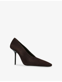 PRODUCT DETAILS - Victoria Beckham suede pumps - 100% suede - Square closed toe, branded footbed, high stiletto heel - Heel height 100mm / 3.93in - Specialist leather clean - Made in Italy - Upper: 100% suede - Lining: 100% leather - Sole: 100% leather Ref: R04549930