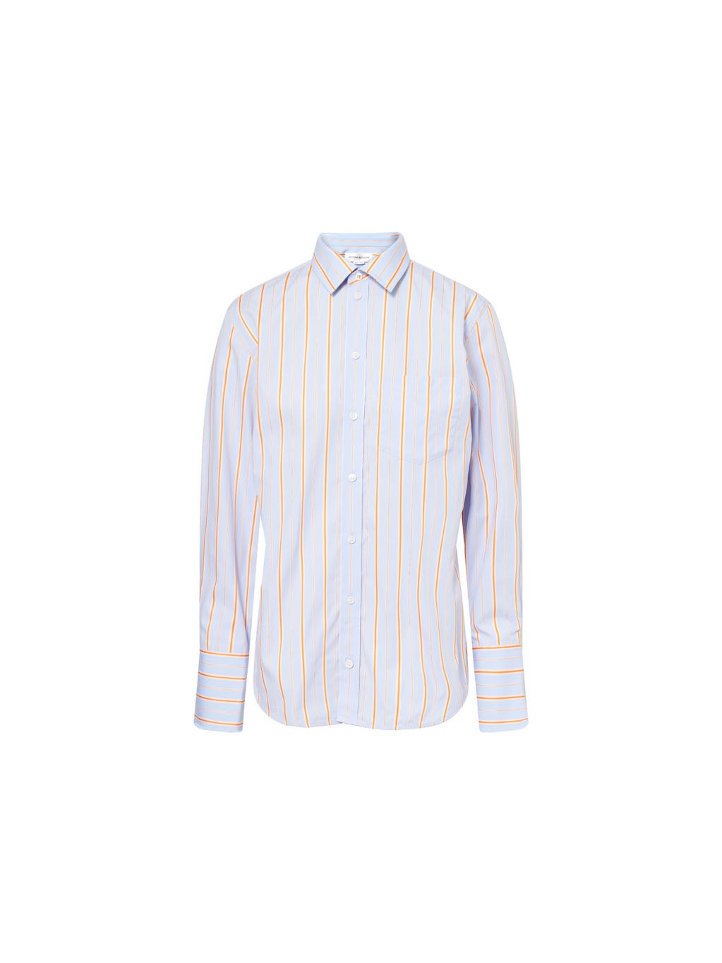 PRODUCT DETAILS - Victoria Beckham cotton-poplin shirt - 100% cotton - Exposed button fastening at front - Spread collar - Buttoned cuffs - Relaxed fit, collar, long sleeves, patch pocket at front, straight yoke and panel at back, all-over striped print, curved hem - Machine wash at 30°C - Made in Turkey - True to size - Size UK 8: length 29in / 74cm - Model is 5ft 10in/1.78m and wears a size UK 8 - Lightweight, slight stretch Ref: R04472772