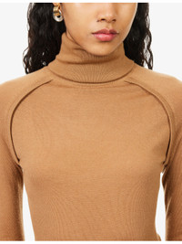PRODUCT DETAILS - Victoria Beckham wool jumper - 100% merino wool; trims 83% merino wool, 15% polyamide, 2% elastane - Slim fit, turtleneck, raglan long sleeves, all-over fine-knit pattern, ribbed trims - Dry clean only - True to size - Model is 5ft 10in/1.78m and wears a size small - Lightweight, stretchy Ref: R04538503