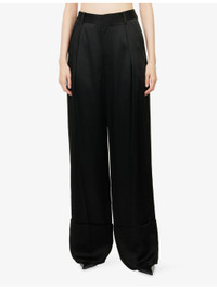 Wide-Leg Turn-Up Fluid-Crepe Trousers