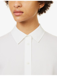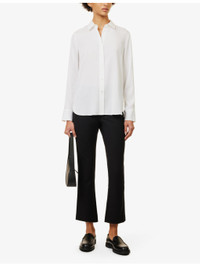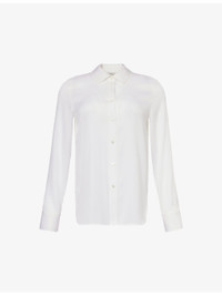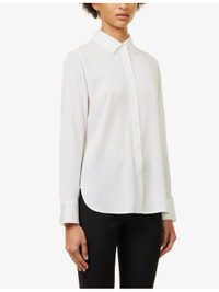 PRODUCT DETAILS - Vince silk-blend shirt - 92% silk, 8% elastane - Exposed button fastenings at front - Regular fit, collar, long sleeves, buttoned cuffs, box pleat at back, curved hem, semi-sheer - Hand wash cold - True to size - Size small: length 26.5in / 68cm - Model is 5ft 10in/1.78m and wears a size small - Lightweight, slight stretch Ref: R04303991