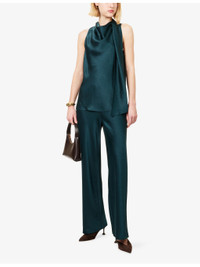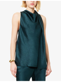 PRODUCT DETAILS - Vince satin top - 100% polyester - Concealed zip fastening - Relaxed fit, cowl neckline, scarf panel at neck, sleeveless, shiny satin finish - Dry clean - True to size - Model is 5ft 10in/1.78m and wears a size small - Lightweight, non-stretch Ref: R04552329