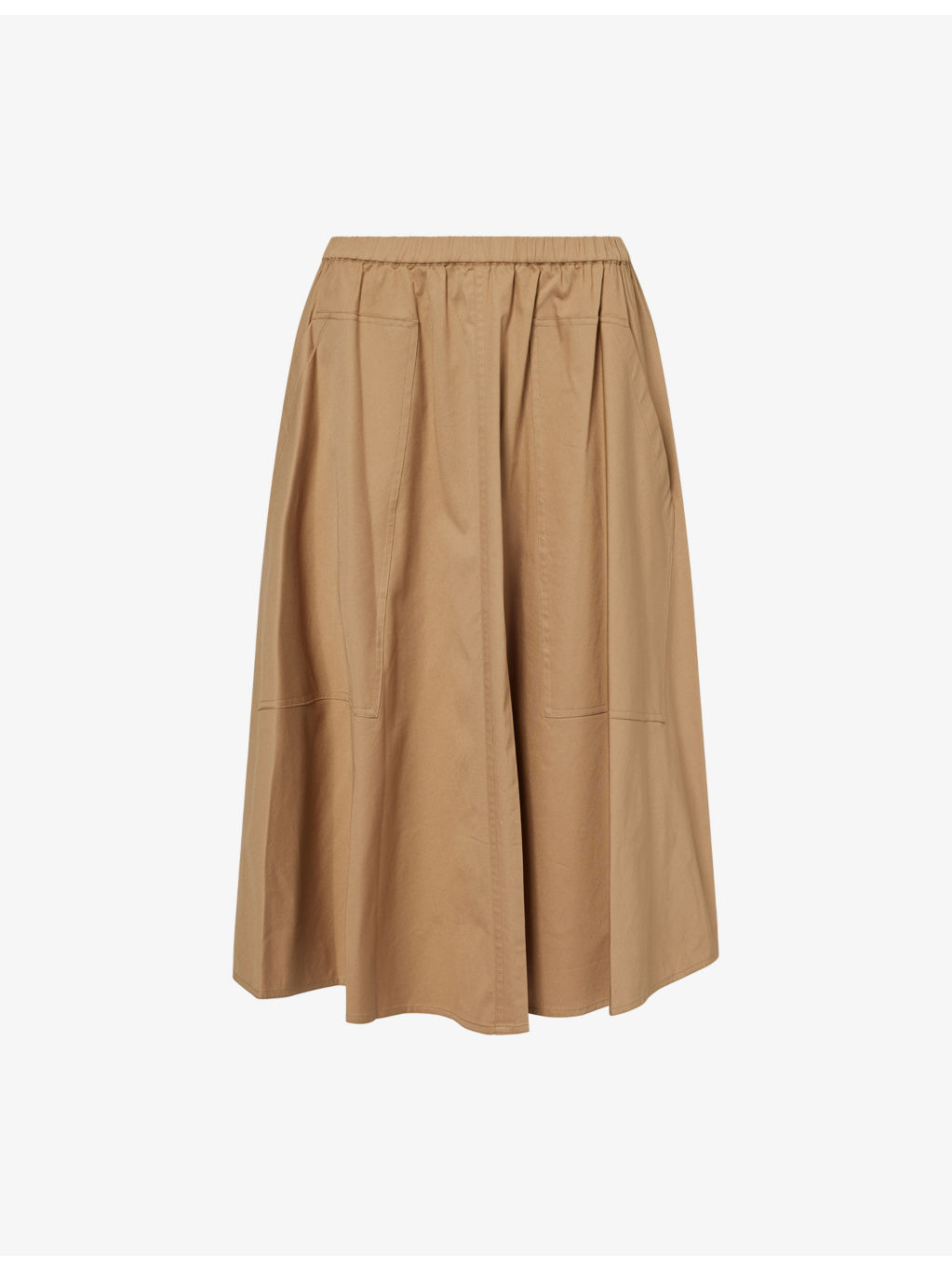 elastic-waistline pocket midi skirt