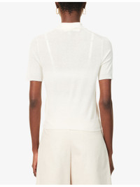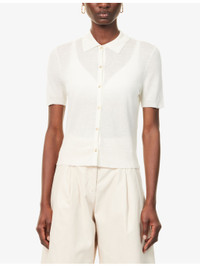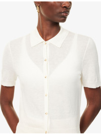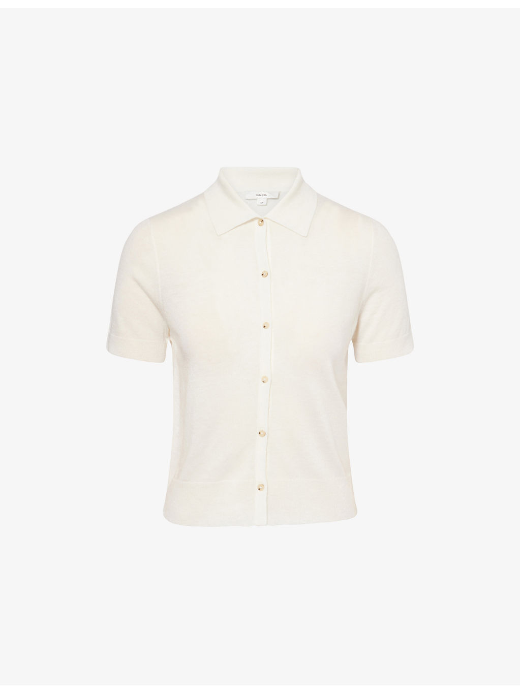 PRODUCT DETAILS - Vince wool-blend top - 73% wool, 21% polyester, 6% cashmere - Exposed button fastening at front - Regular fit, polo collar, short sleeves, all-over knitted, ribbed trims - Hand wash cold - True to size - Lightweight, stretchy Ref: R04481786