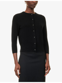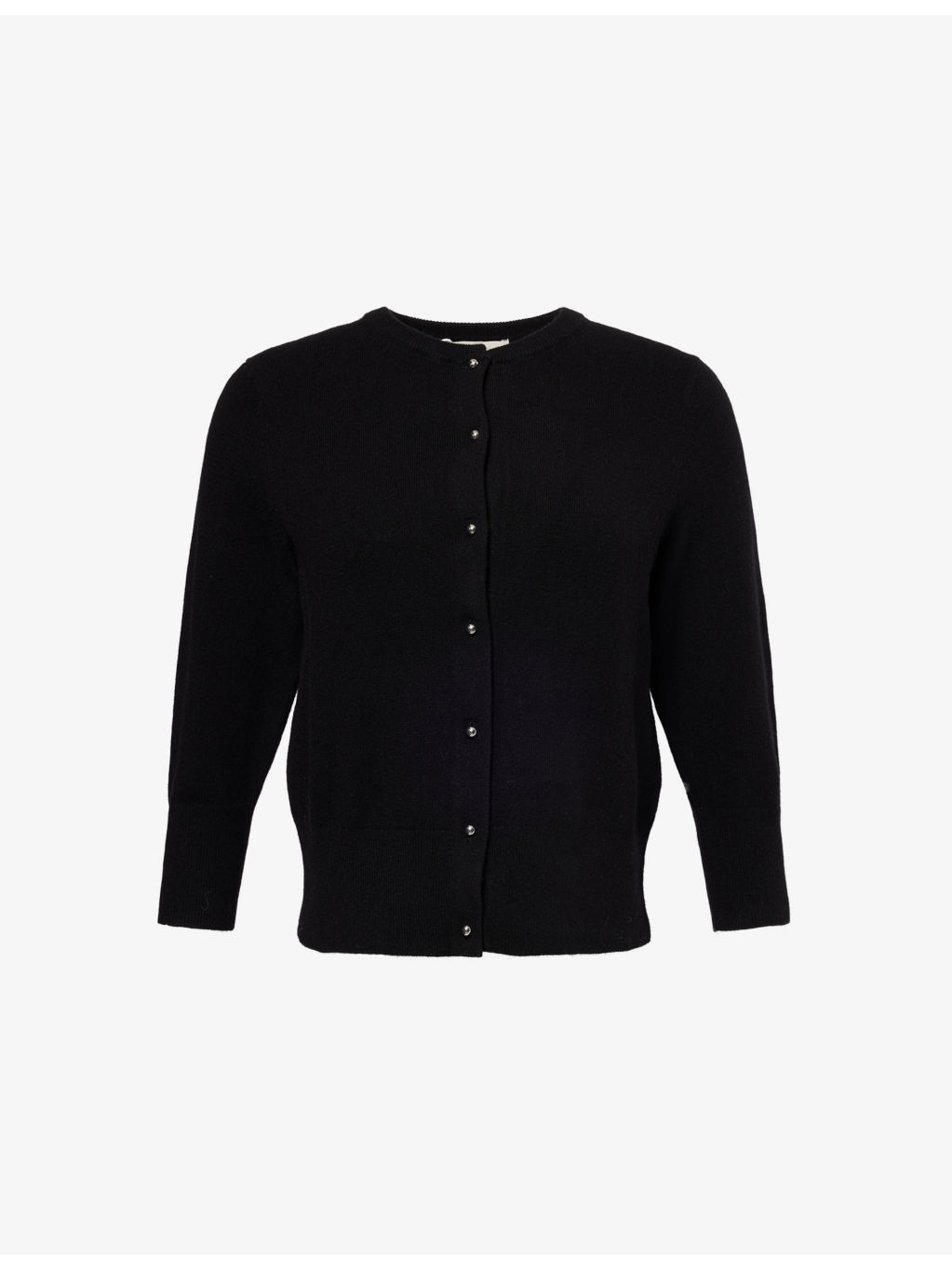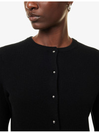 PRODUCT DETAILS - Vince stretch-wool blend cardigan - 67% wool, 28% cashmere, 4% nylon, 1% elastane - Exposed button fastening at front - Regular fit, round-neck, long sleeves, all-over knitted, ribbed trims - Hand wash cold - True to size - Size small: length 20in / 52cm - Model is 5ft 10in/1.78m and wears a size small - Midweight, stretchy Ref: R04518698