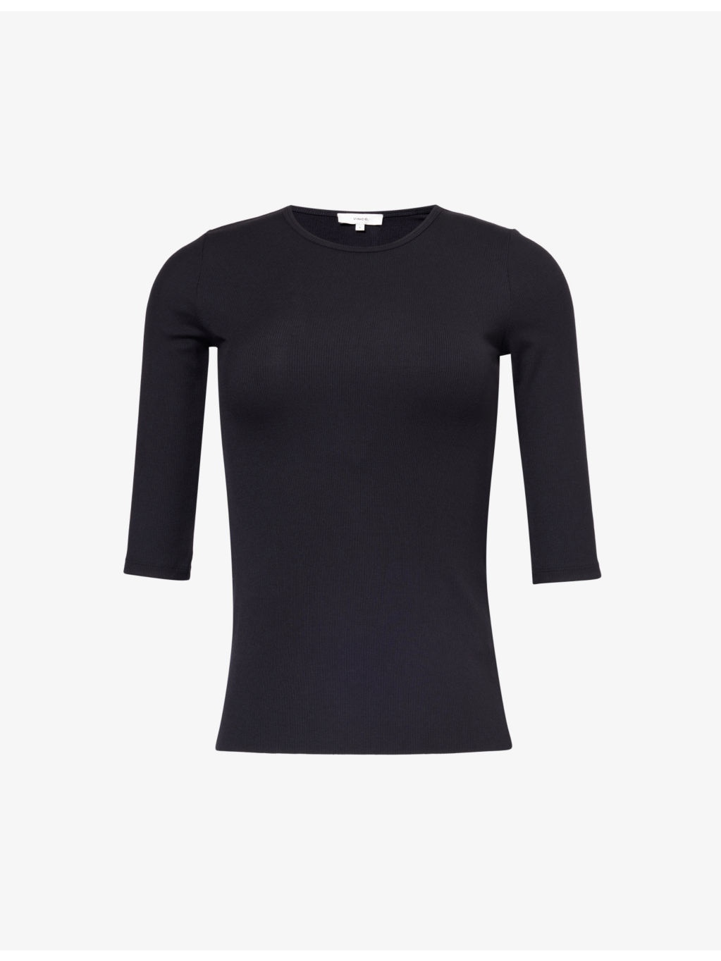 PRODUCT DETAILS - Vince stretch-woven top - 91% modal, 9% elastane - Slips on - Slim fit, round neckline, 3/4 length sleeves, ribbed - Machine wash cold - True to size - Size small: length 23in / 59cm - Model is 5ft 10in/1.78m and wears a size small - Lightweight, slight stretch Ref: R04303992