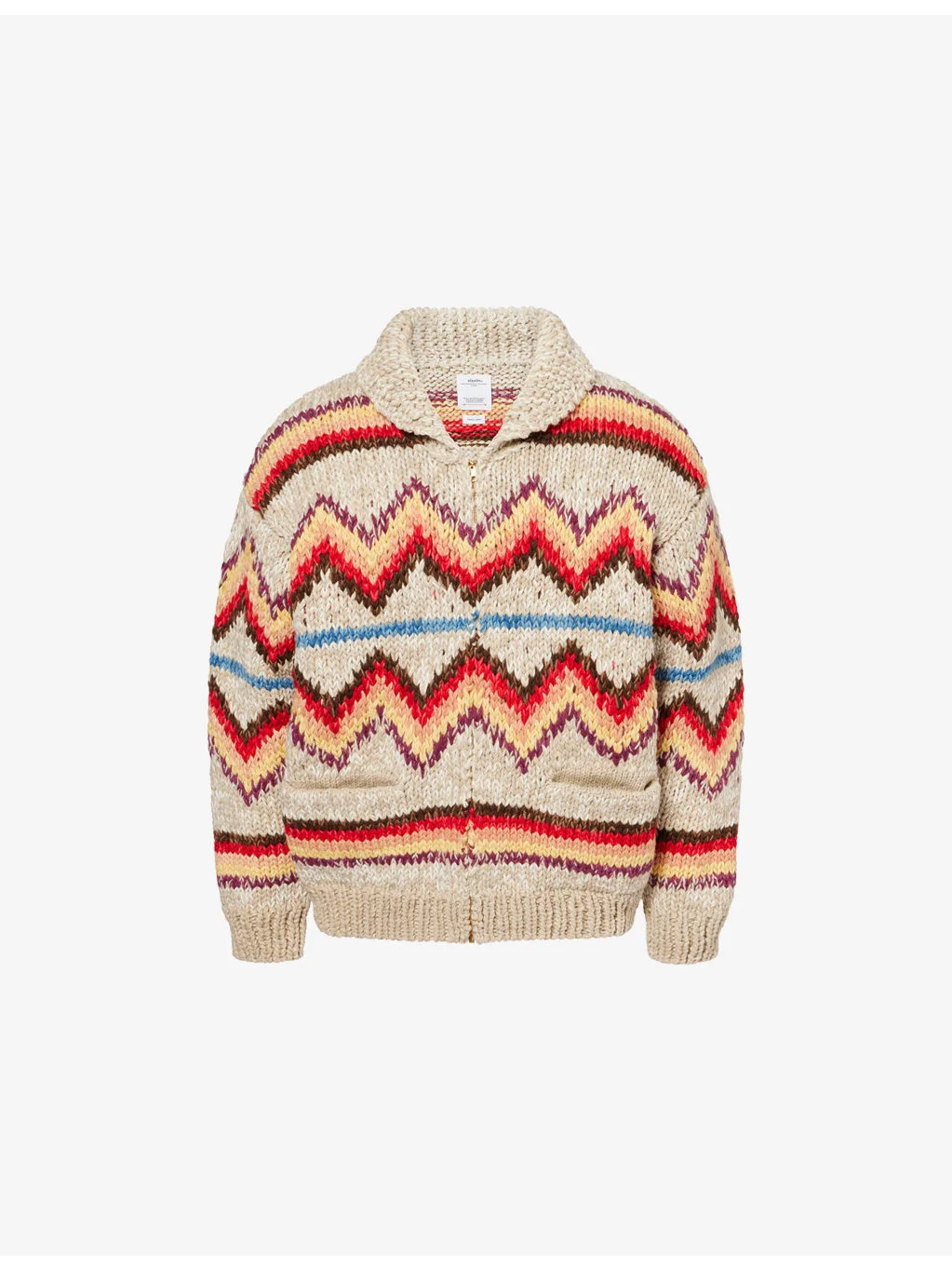 PRODUCT DETAILS - Visvim wool knitted cardigan - 100% wool - Zip fastening - Relaxed fit, short shawl collar, long sleeves, heavy hand knit construction - Dry clean - Model is 6ft 2in/1.88m and wears a size medium - Lightweight, non-stretch Ref: R04444006