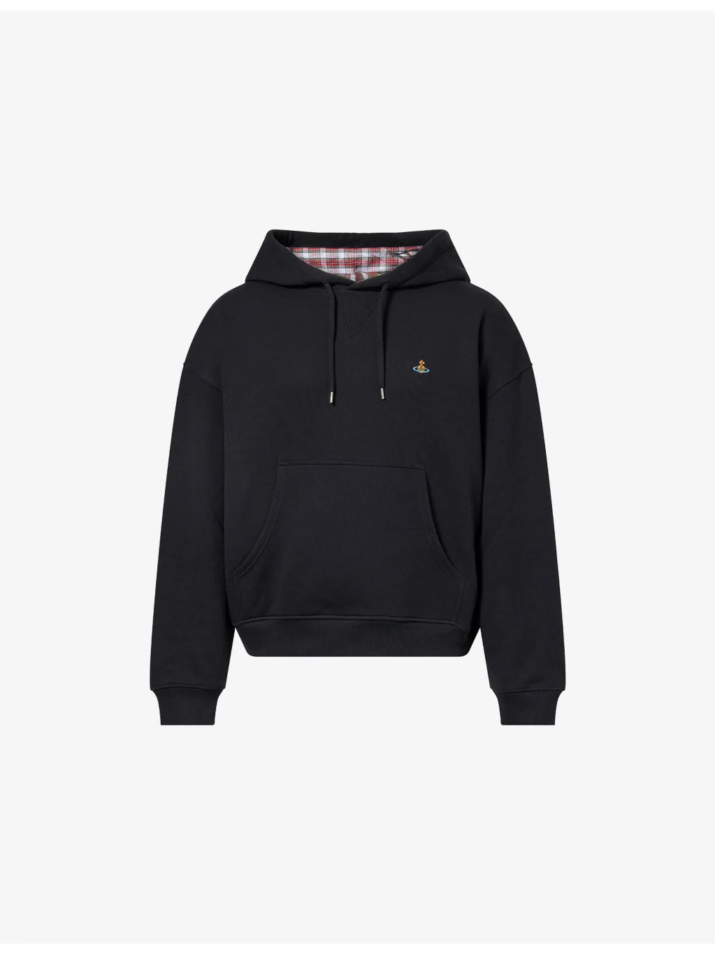 PRODUCT DETAILS - Vivienne Westwood cotton hoodie - 100% cotton - Regular fit, drawstring hood, long sleeves, embroidered logo at chest, kangaroo pocket at front - Machine wash at 30°C - Made in Turkey - Model is 6ft 2in/1.88m and wears a size medium - Midweight, slight stretch Ref: R04550487