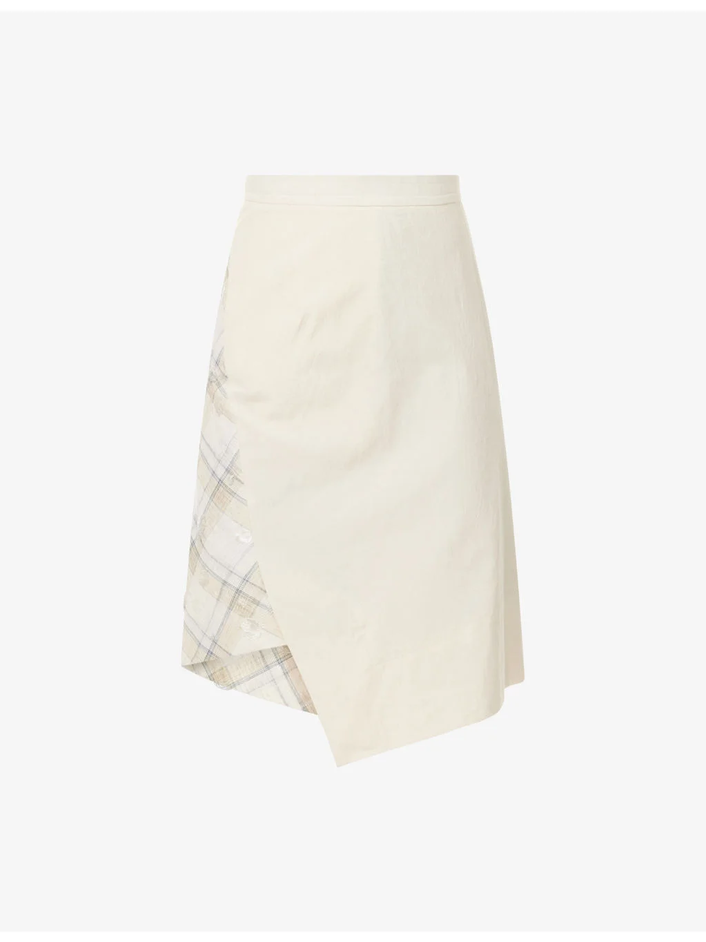 PRODUCT DETAILS - Vivienne Westwood cotton midi skirt - 100% cotton; lining 100% viscose - Concealed zip fastening at side - Regular fit, high waist, wrap-style front, tartan pattern at back, distressed details, side pocket, asymmetric hem - Dry clean only - Made in Italy - True to size - Lightweight, non-stretch Ref: R04600195